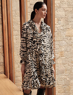 Regular Fit Zebra Print Blouse with Scarf Neck and Balloon Sleeves