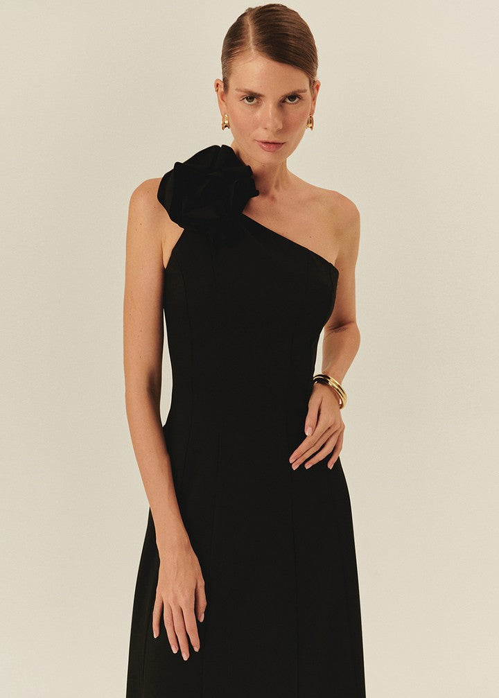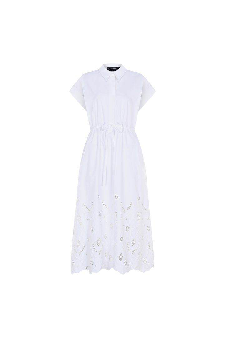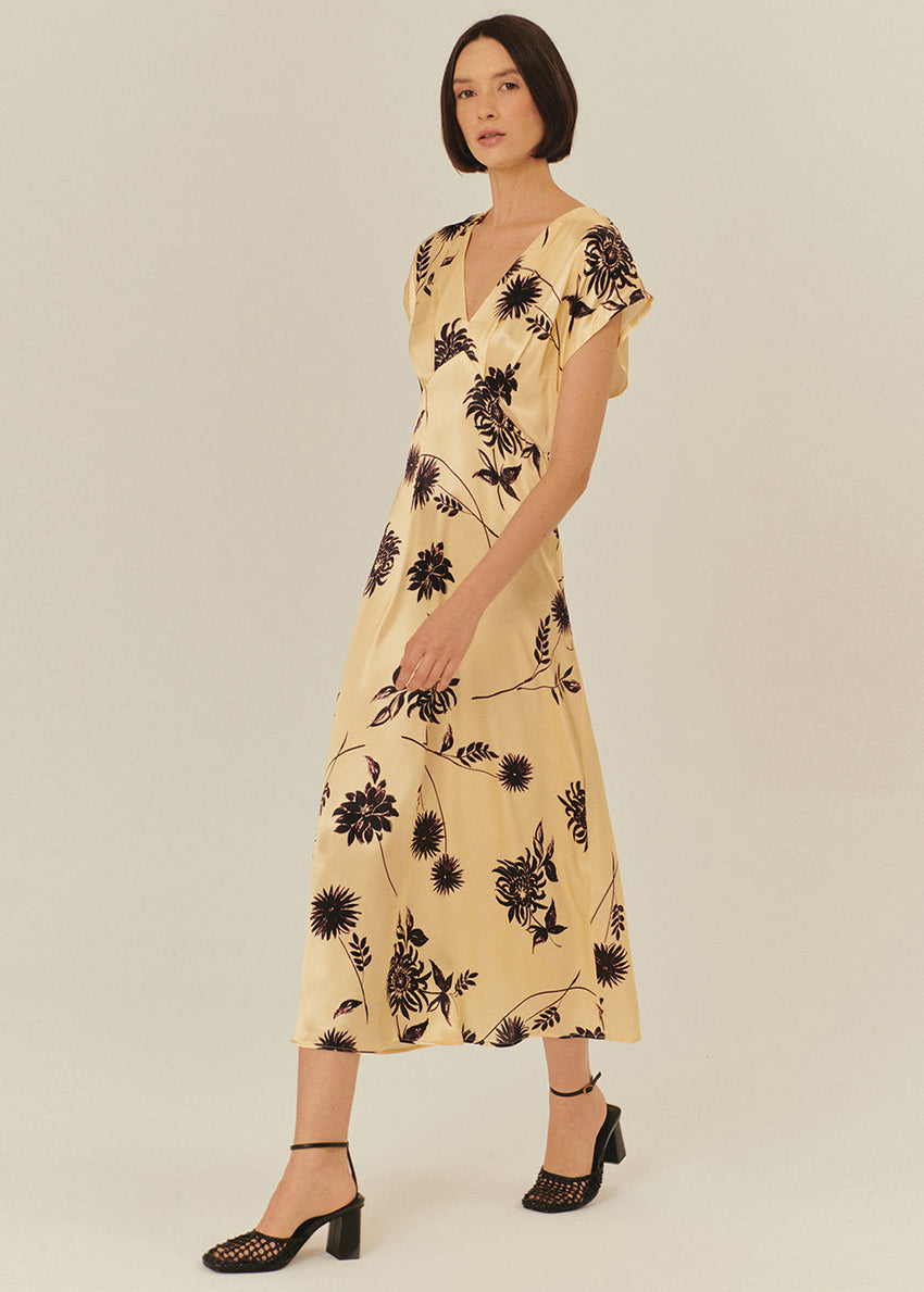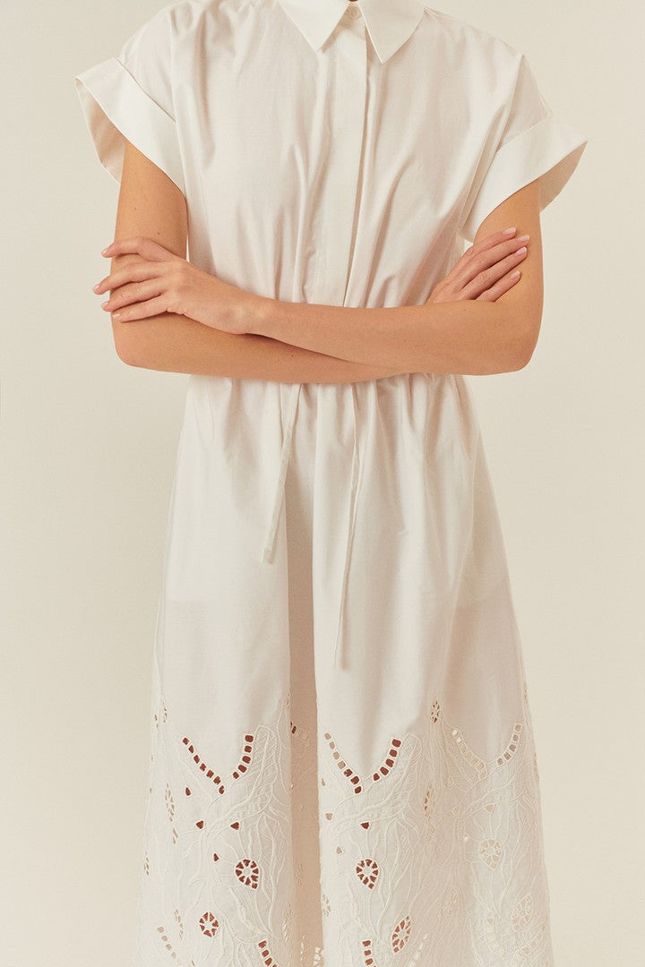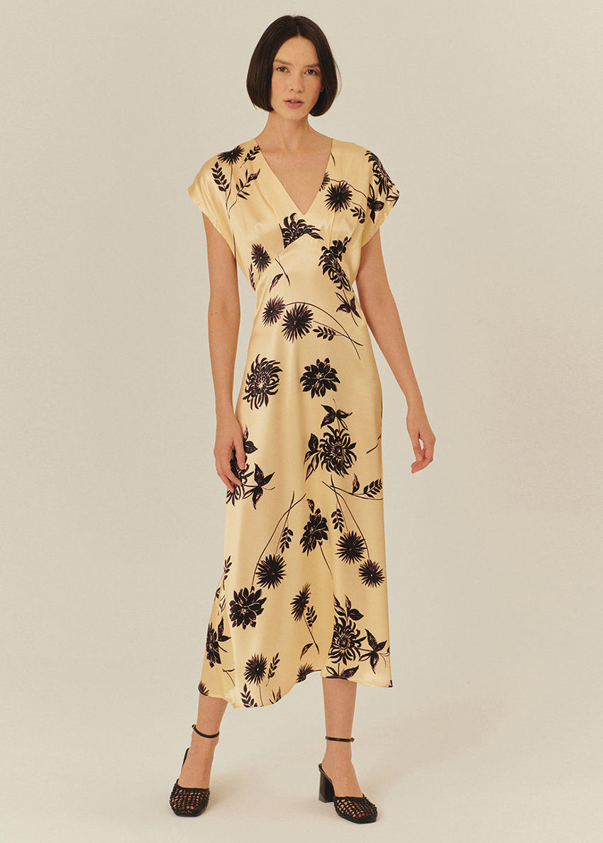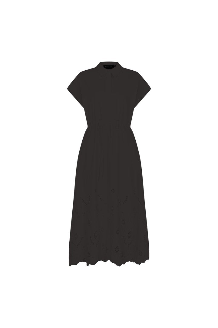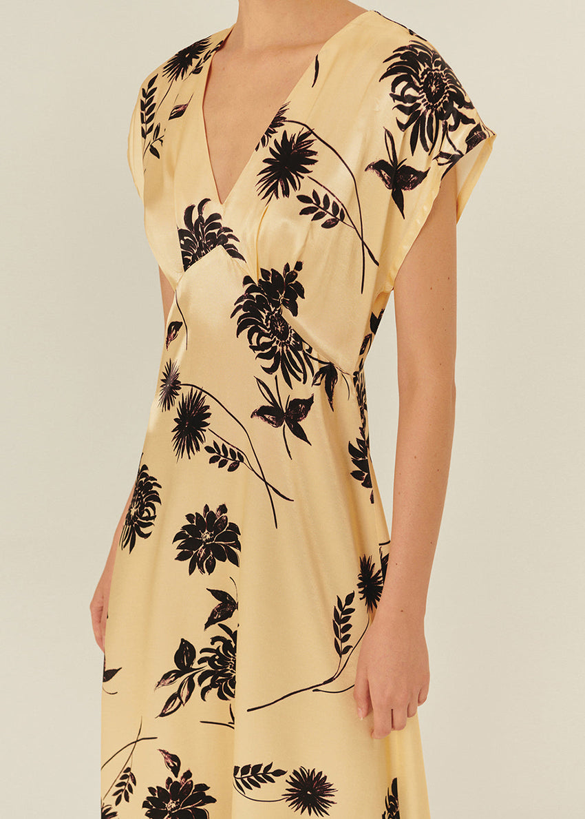 Dropped Shoulder Vneck Floral Embroidered Viscose Dress