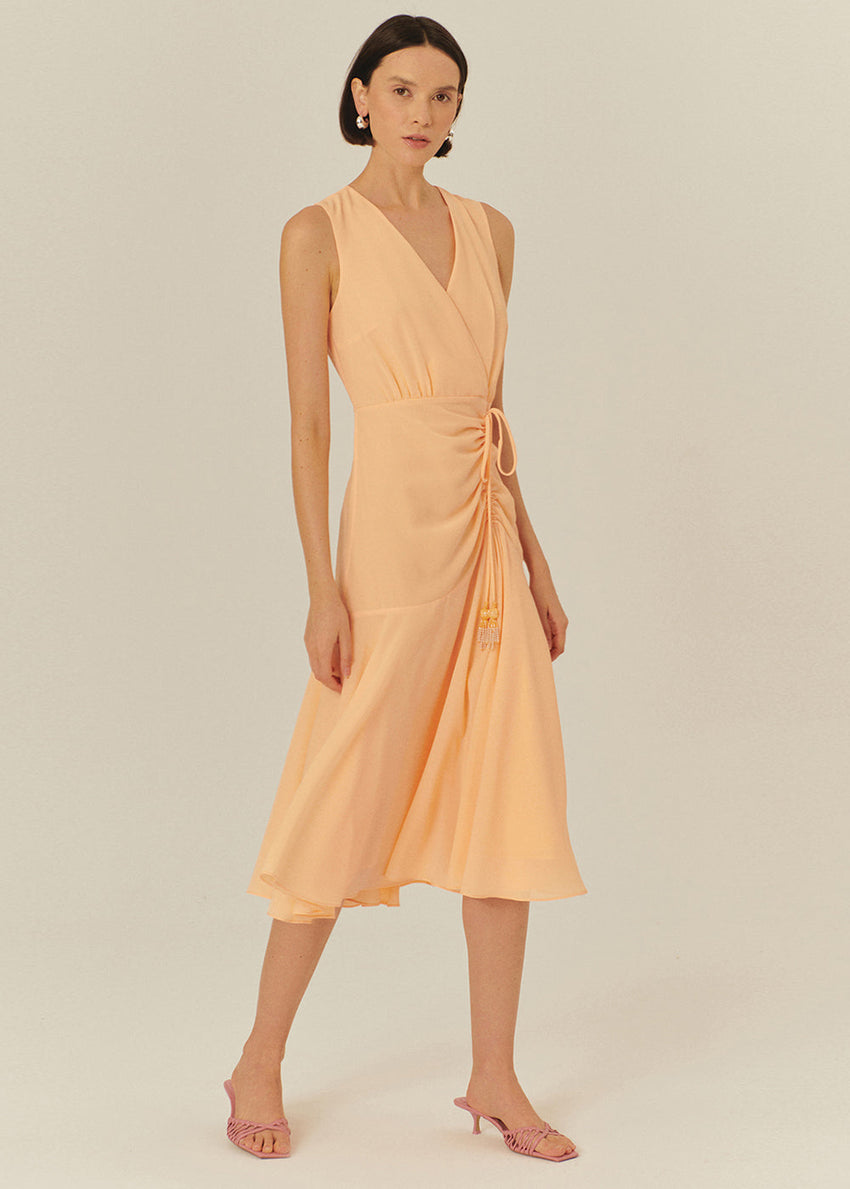 Regular Fit Sleeveless Midi Dress with V-Neck and Ruched Details