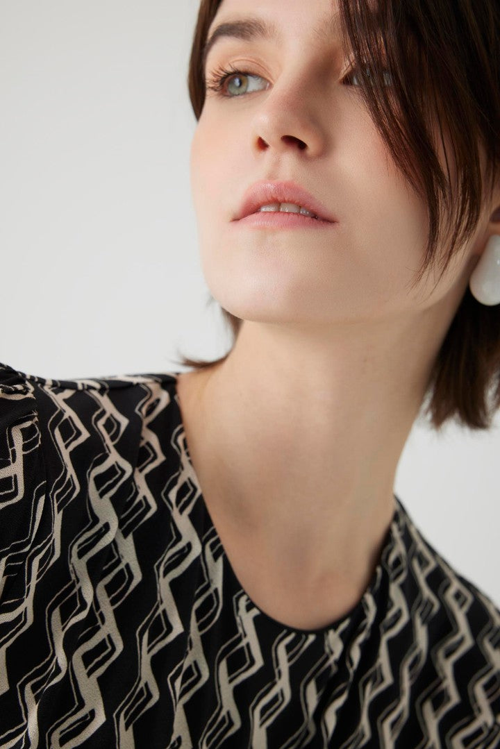Geometric Patterned Stretch Knit Midi Dress with Tie Detail