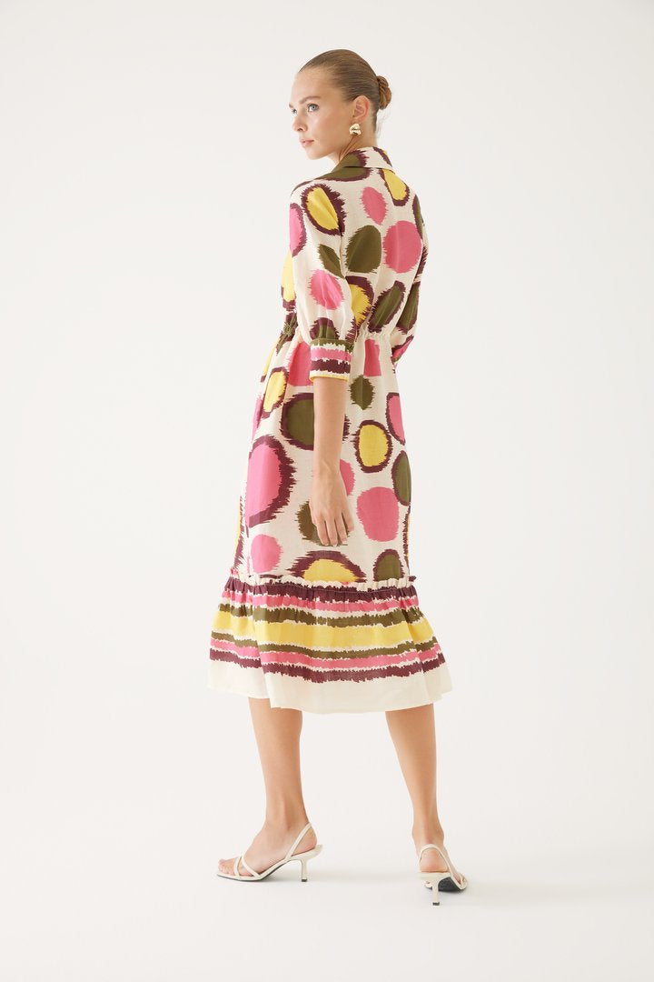 Floral Print Midi Shirt Dress with Drawstring Detail
