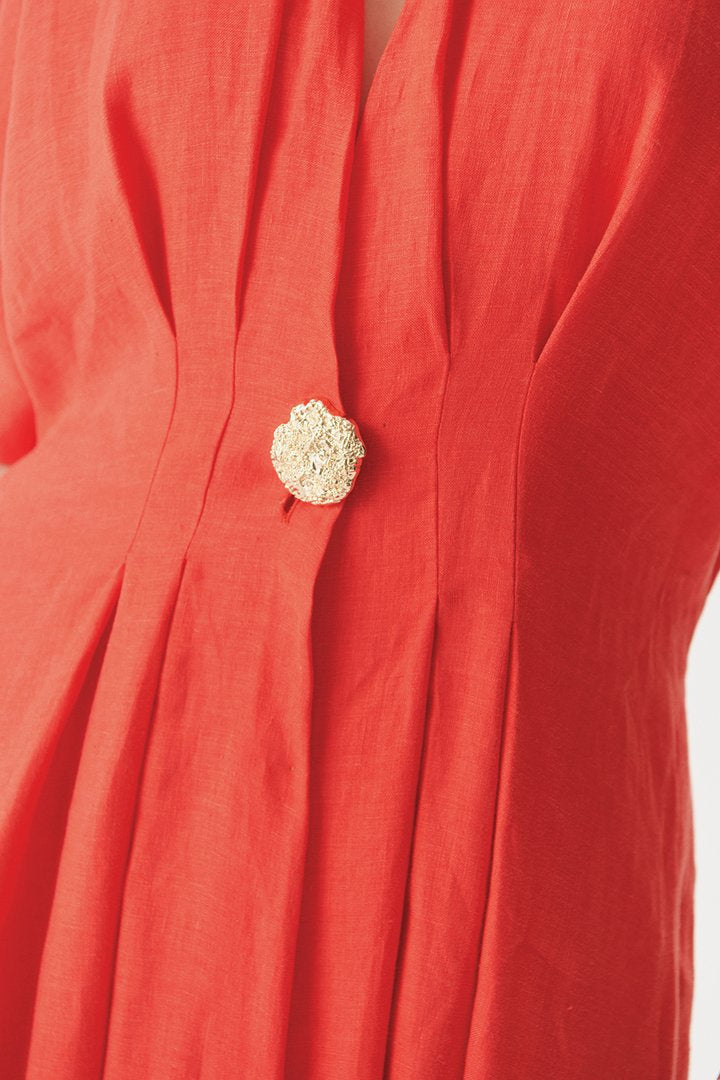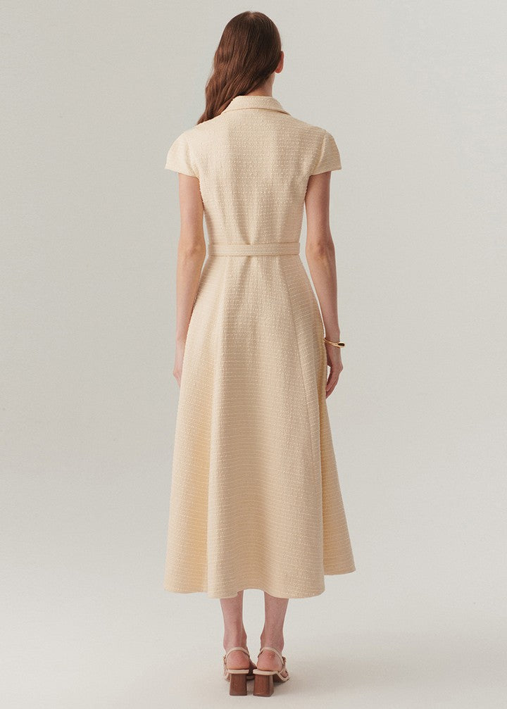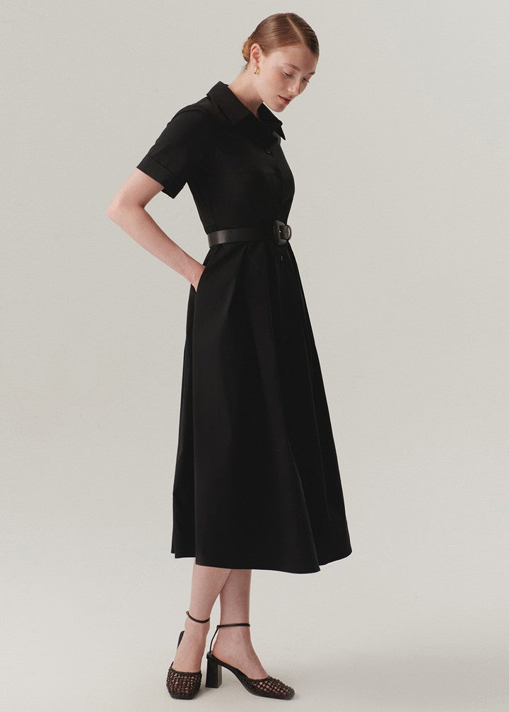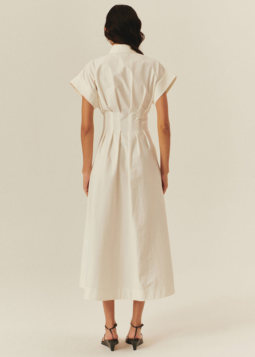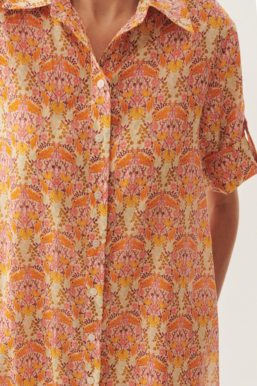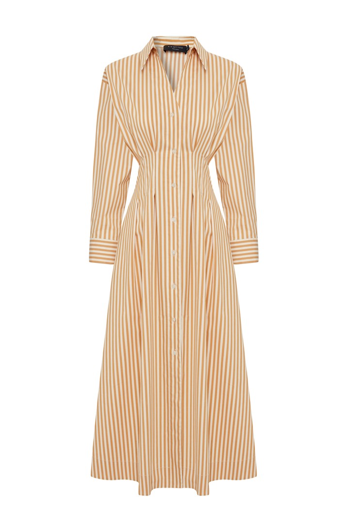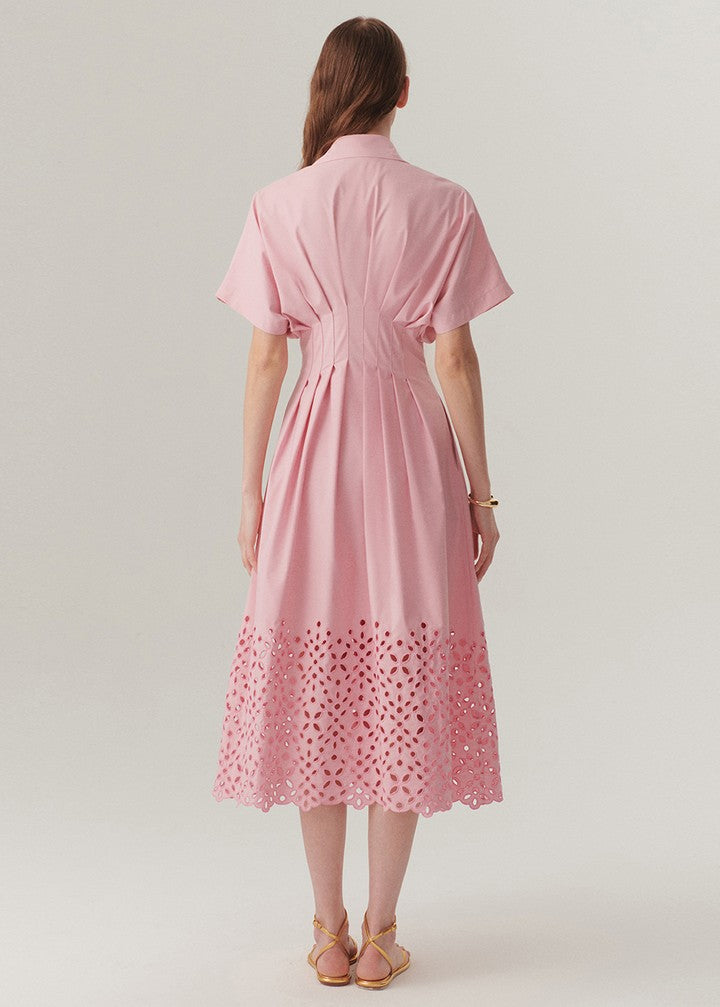 Salmon Balloon Sleeve Fitted Waist Midi Shirt Dress