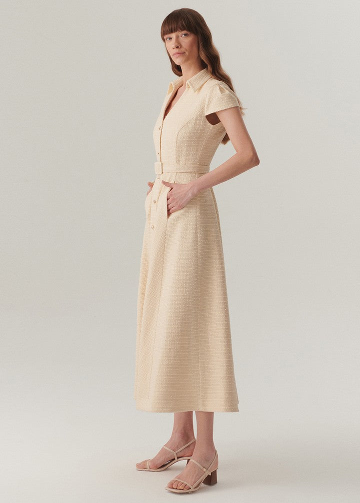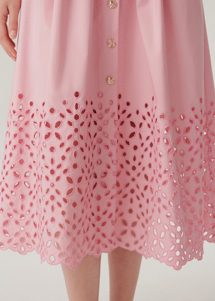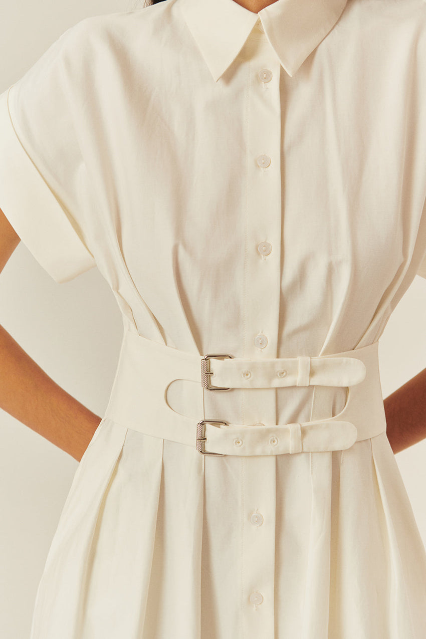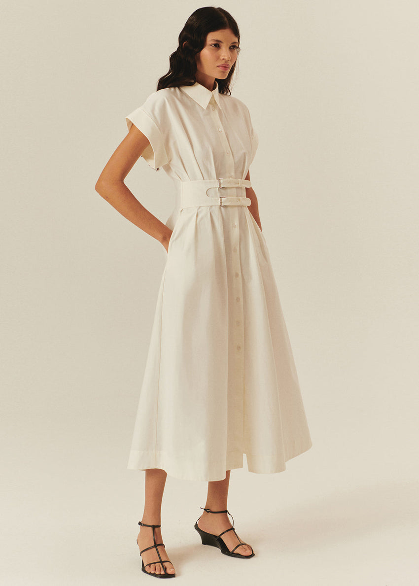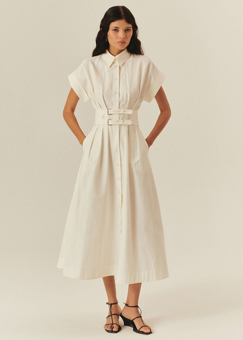 Salmon Balloon Sleeve Fitted Waist Midi Shirt Dress