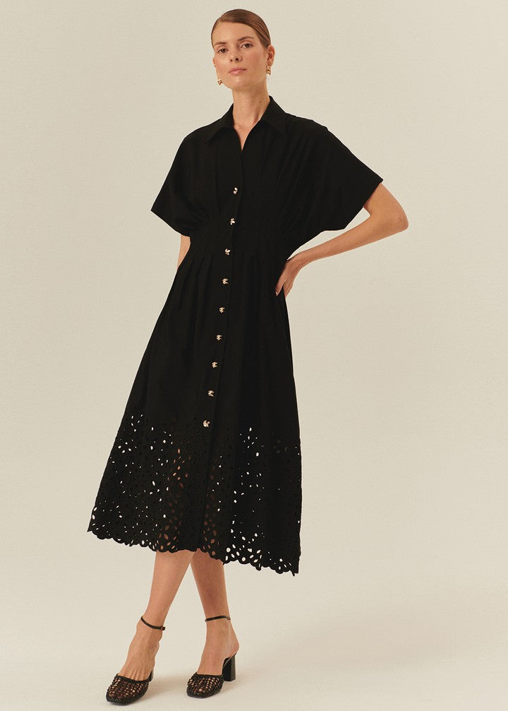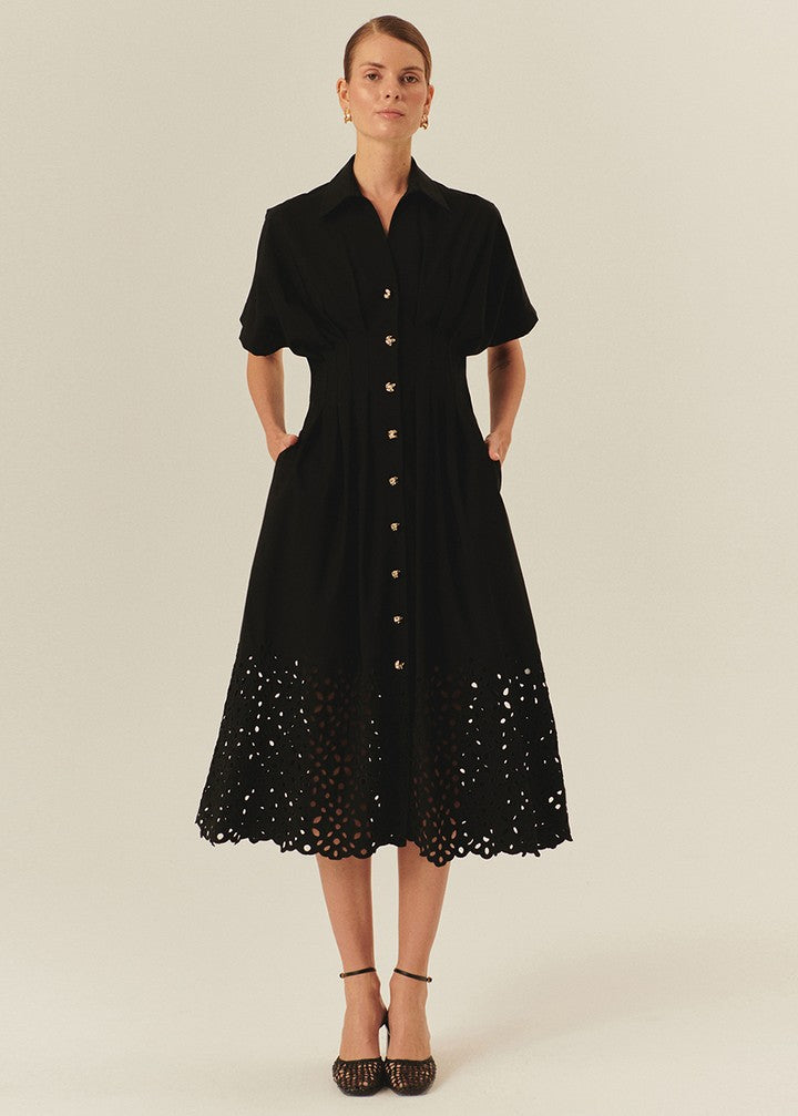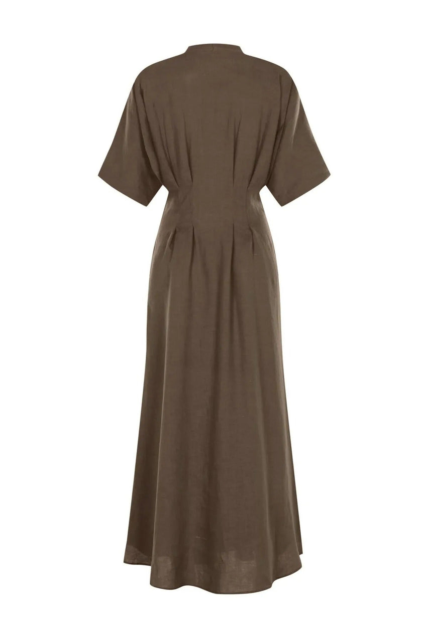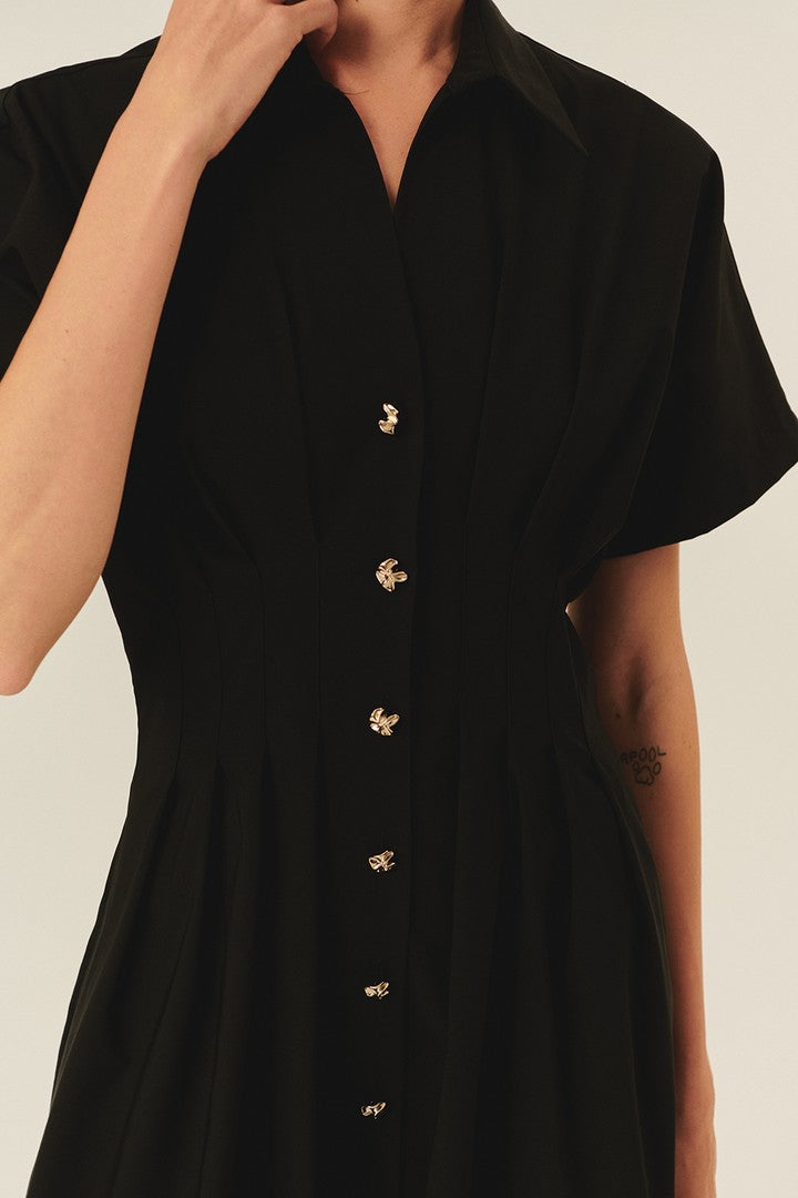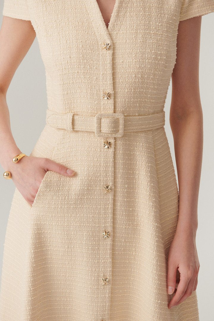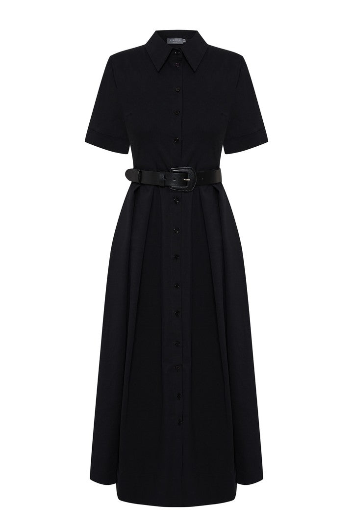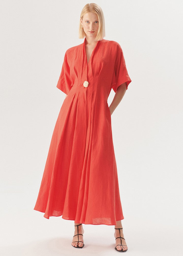 Salmon Balloon Sleeve Fitted Waist Midi Shirt Dress