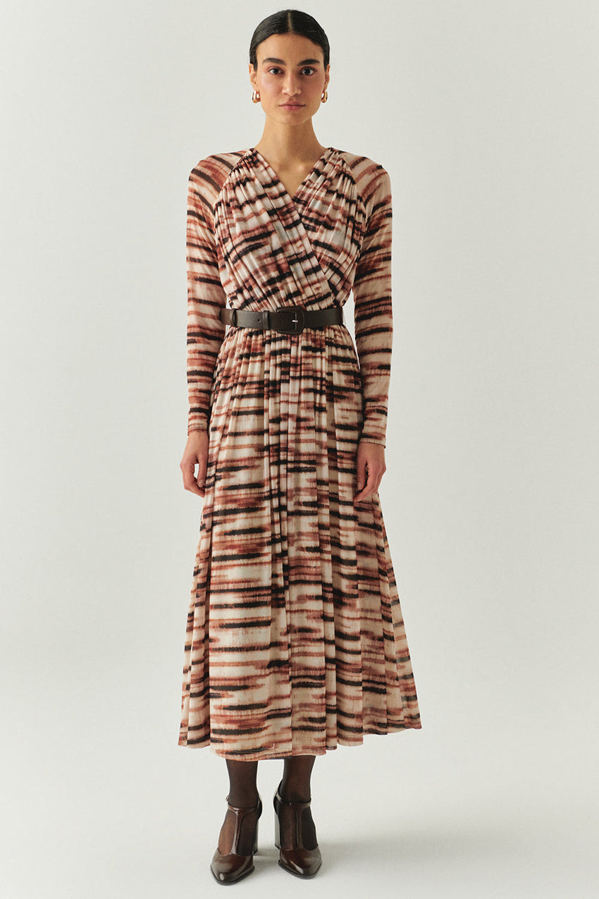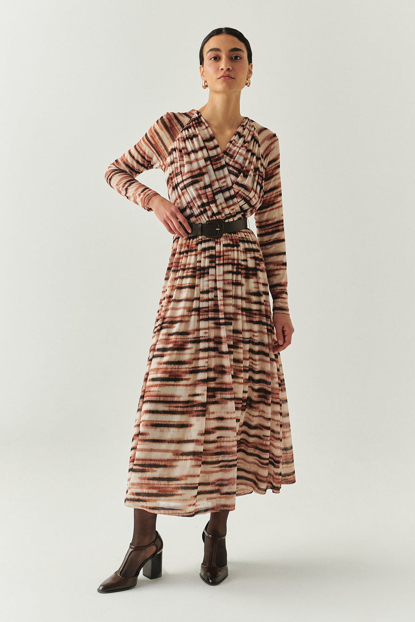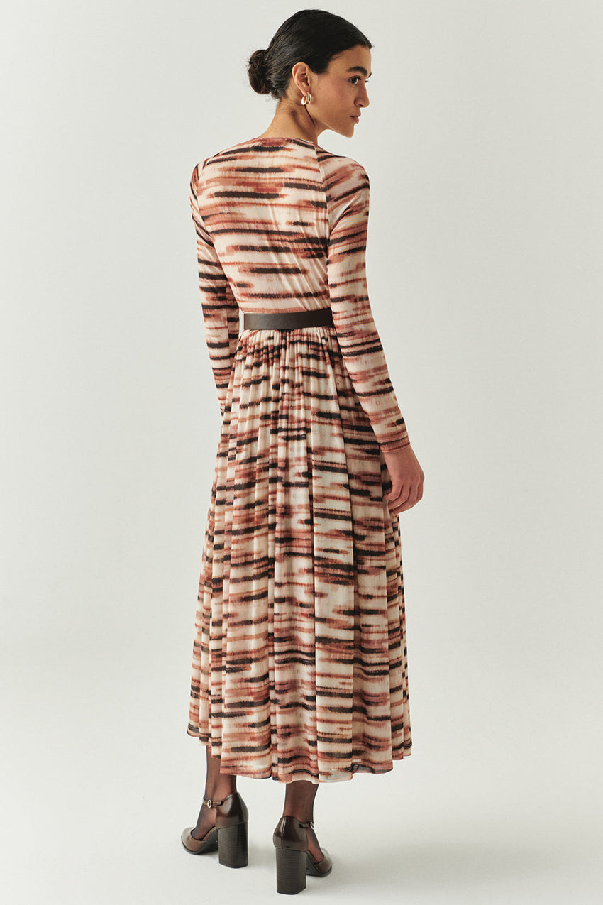 Regular Fit Patterned Midi Dress with Long Sleeves