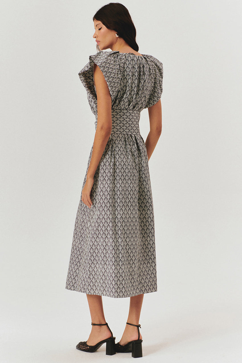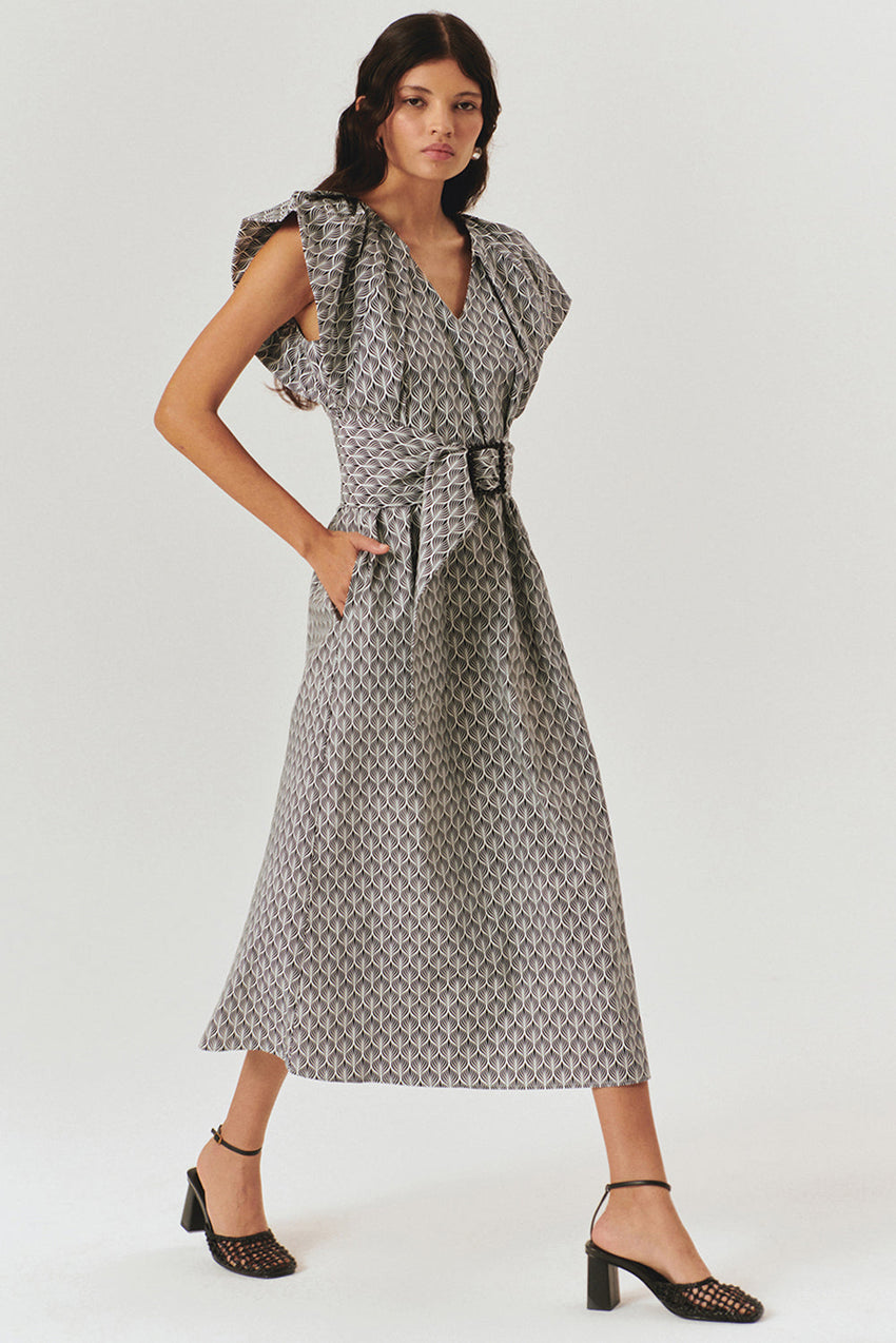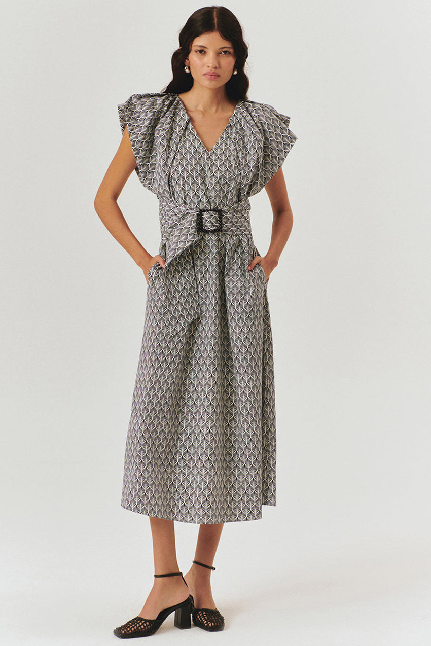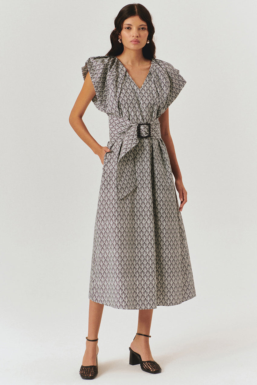 Regular Fit Patterned Midi Dress with Long Sleeves