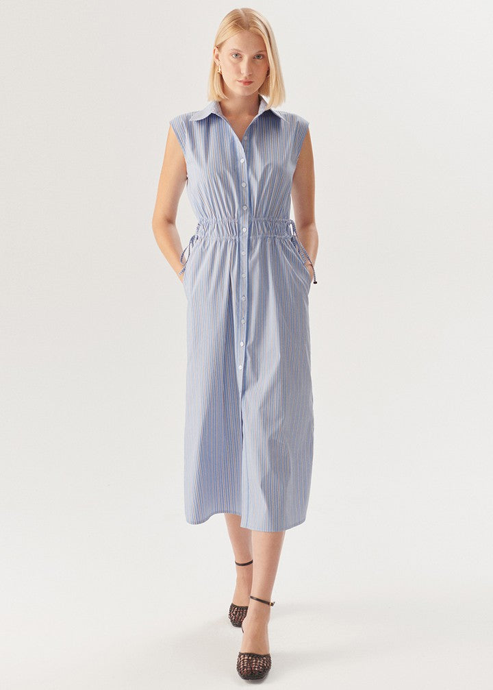 Striped Cotton Mini Shirt Dress with Dropped Shoulders